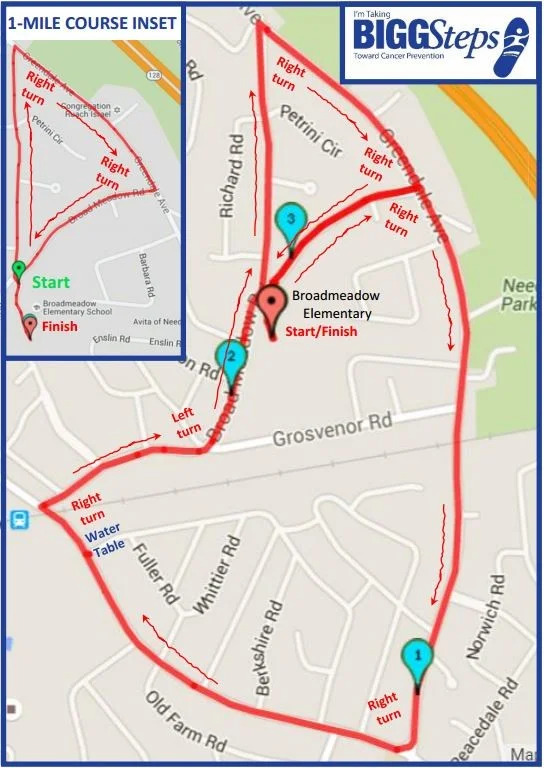 For those driving, Broadmeadow Elementary School is located at 120 Broad Meadow Road in Needham, Massachusetts. It is closest to Exit 18 off of Route 128. Parking in the school lot is limited because of the race setup; please arrive early if you would like to utilize the spaces. Parking is limited in the school area, but there is plenty of nearby street parking less than a quarter mile from the finish line.
